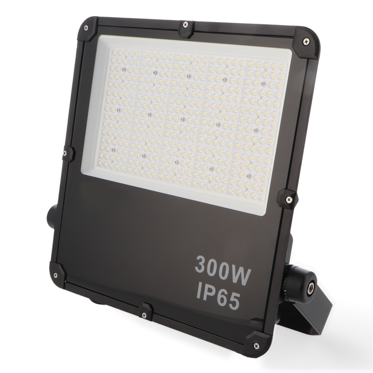 Proyector LED de 300W de alto rendimiento, perfecto para aplicaciones de gran escala. Construcción robusta, disipación térmica eficaz y larga vida útil.